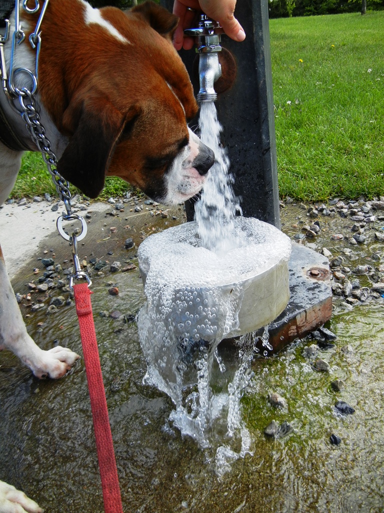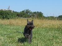 he's smiling at us!), his manners are impeccable (he is on his 'bed' and he 'kennels up' as quick as he can) and his interaction with other dogs is unlike